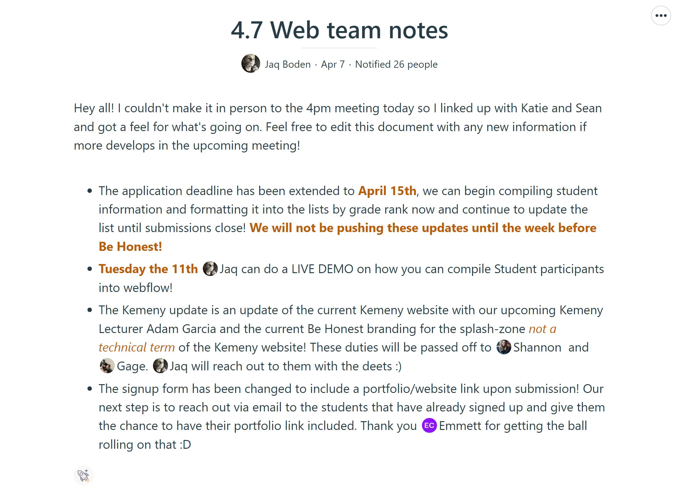 As we neared the event I was given a team to lead in the completion of the website. My role was to direct my teammates in entering the collected names and grade ranks of this years participating students names and formatting them onto the final version of the website, to be launched May 6th.