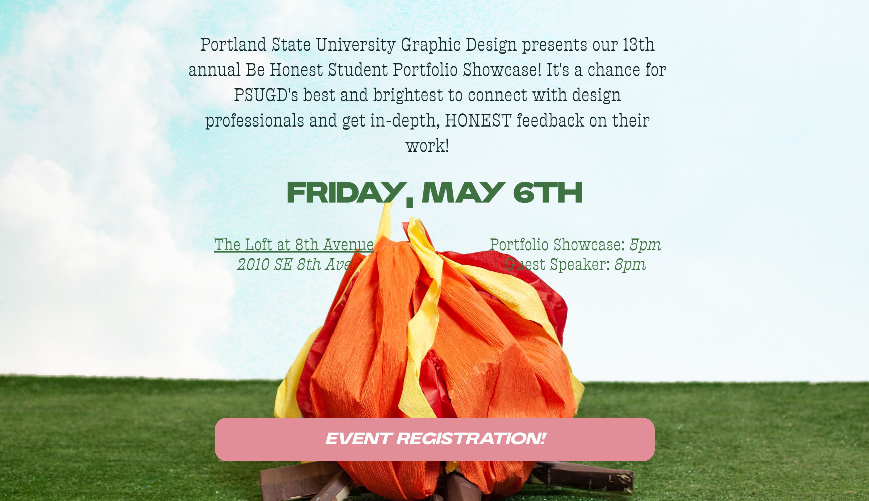 Be Honest is an annually held event for PSU Graphic Design students to connect with design professionals and get in-depth and honest feedback on their work. My primary role was that of web team lead and a contributor to the motion team.